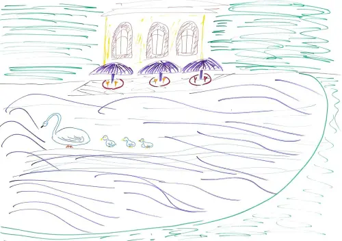 Я люблю гулять на Патриарших прудах летом и зимой. В этом году на пруду у лебедей появились птенцы. Очень увлекательно сидеть на берегу и наблюдать за ними, как они едят водоросли и ныряют за мамой.