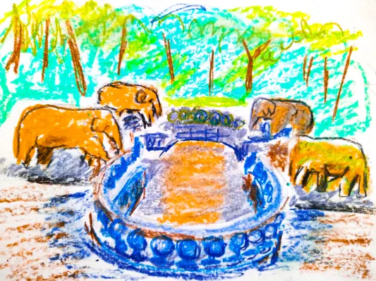 Фонтан «Слоники» находится в Щукино. Моя мама работает около этого детского сада. Фонтан много лет заброшен, но его остатки привлекают население своей необычностью. Жалко, если разрушатся.