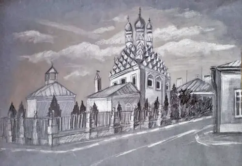 Зарисовка старой Москвы. Когда то Москва была именно такой. Брусчатка, немногочисленные люди на улице, машин не было.
