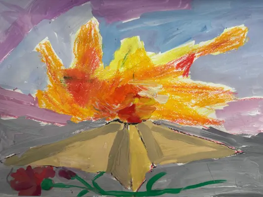 На своей картине я изобразил Вечный огонь. Это один из главных символов нашей Победы, он есть в каждом городе нашей страны. А ещё Вечный огонь - это знак того, что мы, потомки, помним о людях, победивших фашистов, и будем вечно благодарны героям