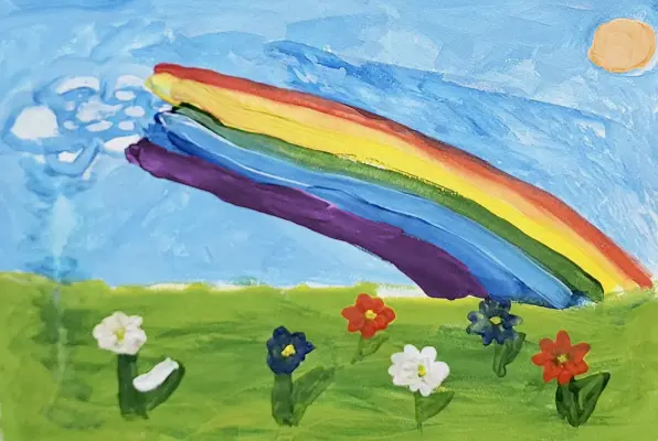 На своем рисунке Дарьяна изобразила радугу, которую увидела в своем дворе после дождя. Девочке всего 5 лет и это явление природы произвело на нее неизгладимое впечатление.