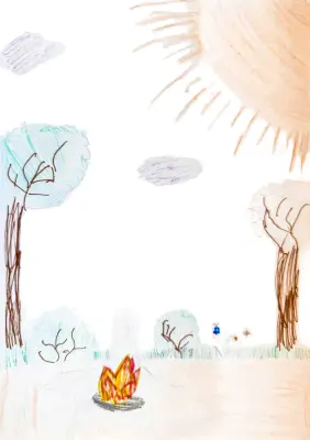 На рисунке изображён вечный огонь, символизирующий силу и отвагу русского народа в борьбе с немецкими захватчиками. Люди должны помнить о той цене, которой наши предки дали нам свободу.