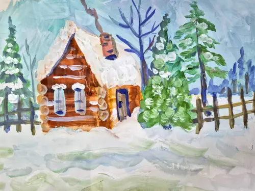 Мне очень нравится зимнее время года. И как-то раз, прогуливаясь, я увидел очень милый красивый маленький домик. Это было так красиво в сочетании с белым пушистым снегом, что мне захотелось его нарисовать.