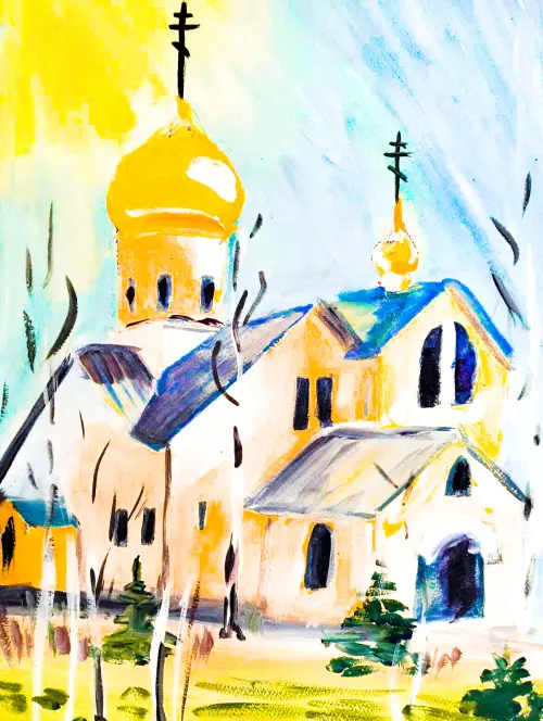 Смотрю и восторгаюсь, невероятно красивый, с золотыми куполами. Облака, проплывающие над ним озаряются розовым цветом. Там уютно, тепло. Прихожу - вспоминаю папу и молюсь...