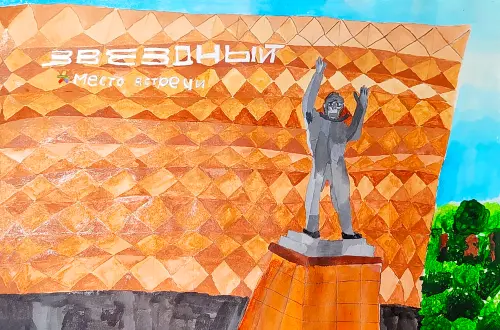 Монумент представляет собой шагающую фигуру Юрия Гагарина в скафандре с непокрытой головой в полный рост. Его руки подняты в приветственном жесте — шагнув вперёд, он протягивает руки к небу. Статуя располагается на невысоком, но монументальном постаменте.