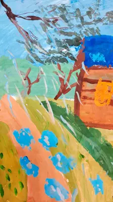 Я нарисовал свой в район во время дождя. Многие не любят дождливую погоду, а мне она нравится, потому что в ней есть своя особенная красота и вдохновение.