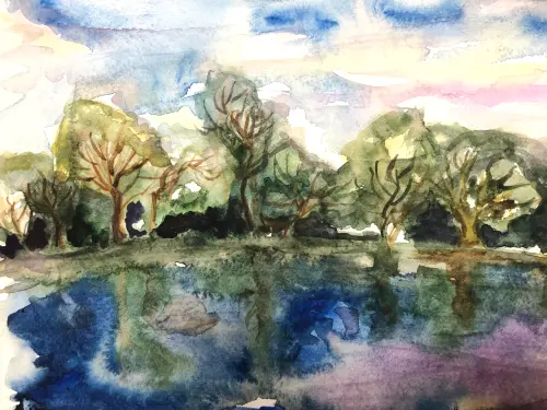 Когда я смотрю на свою работу, я чувствую именно это - умиротворение. Хочется остановиться, послушать птиц, шелест листвы от ветра, далёкие звуки города. Я постарался остановить это мгновение.