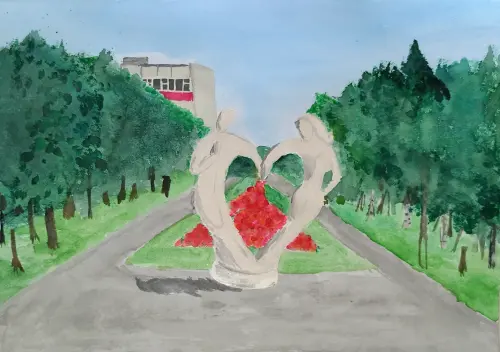 Скульптура, изображённая на рисунке находится на аллеи в городе Московский.Скульптура, изображённая на рисунке находится на аллеи в городе Московский. Мне очень нравится гулять по этой аллеи. Летом там всегда очень красиво, а зимой устанавливают красивые декорации .