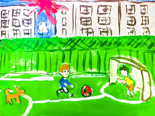 Мы с друзьями по вечерам очень любим играть в футбол, поэтому, когда на улице хорошая погода, мы собираемся во дворе улицы Митинской, д. 43, где есть отличная огороженная футбольная площадка с хорошим покрытием. А те, кто не умеют играть, приходят просто «поболеть».