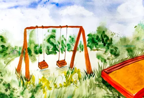 Мы часто гостим у бабушки в Десне, и у неё во дворе есть небольшая площадка с песочницей и качелями. Я всё детство качался на этих качелях с друзьями!