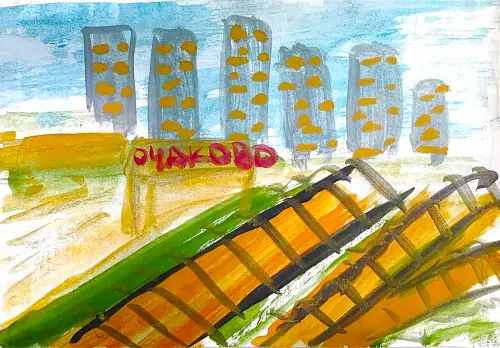 В моем районе расположена станция "Очаково". Когда я нахожусь у бабушки, то люблю из окна наблюдать за пробегающими на скорости поездами и электричками.