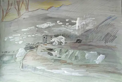 Белый медведь с нетерпением ожидает наступления зимы, предвкушая снег и морозы.