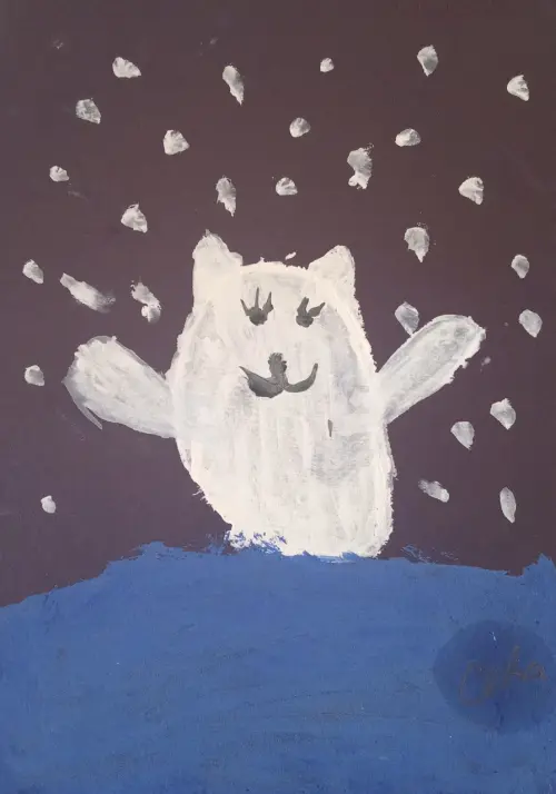 Ходил я как-то раз с родителями в Московский зоопарк и вот увидел я там белых медведей, а когда вернулись домой мне захотелось нарисовать маленького медвежонка. Меня мама, когда я был совсем маленьким называла медвежонок... Я очень люблю животных, мне всегда интересно изучать окружающий меня мир.
