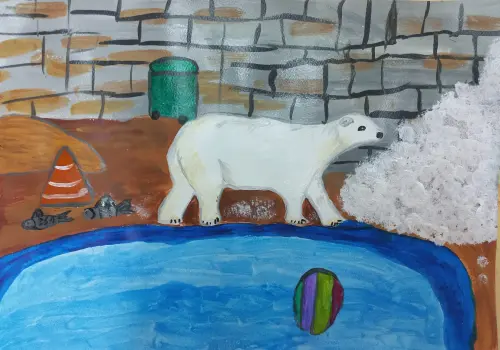 Я и мои друзья - эколята. Мы стараемся беречь природу и помогаем сохранить чистой окружающую среду. В этом году мы с воспитателями и родителями изучали Арктику и её обитателей. Поняли, что и от нас зависит чистота водоемов и сохранение белых медведей. Мой рисунок это напоминание людям, что белых медведей осталось очень мало.