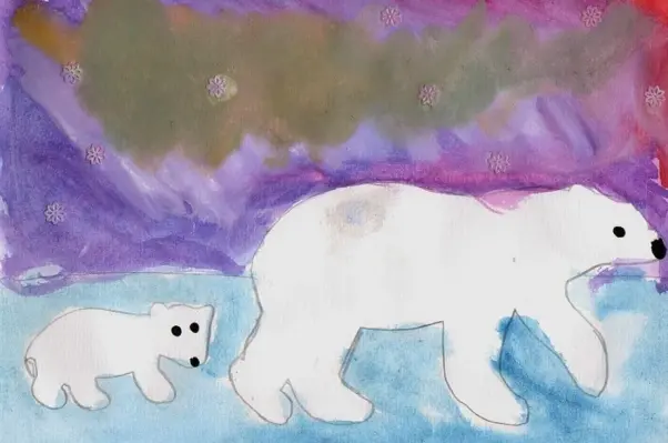 Представьте себе милого медвежонка, который исследует заснеженные просторы Севера. Он небольшого роста с пушистым белым мехом, который переливается на солнце. Медвежонок стоит на фоне кристально чистого голубого неба и бескрайних снега, его маленькие черные глаза полны любопытства. Вокруг него рассыпаны снежные холмы, и можно увидеть много больших кусочков льда, которые блестят, как драгоценности. У медвежонка в лапах может быть маленькая игрушка. Этот рисунок передает атмосферу беззаботного детства и красоту дикой природы Севера.