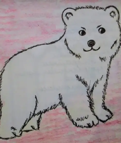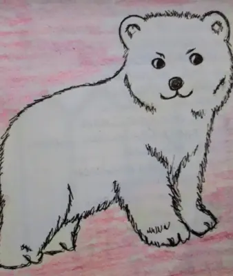 Представьте себе милого медвежонка, уютно устроившегося на зеленом лугу. У него густая коричневая шерсть и большие, выразительные глаза, которые излучают доброту. Медвежонок сидит на задних лапках, а передние положены на колени, создавая комичное и очаровательное выражение лица. Вокруг него цветут яркие цветы, а над головой светит теплое солнце, создавая теплую атмосферу. Вдали можно увидеть деревья и легкое облачко в небе, что добавляет картине ощущение спокойствия и умиротворения. Этот рисунок передает радость и невинность детства, приглашая нас в мир беззаботной природы.