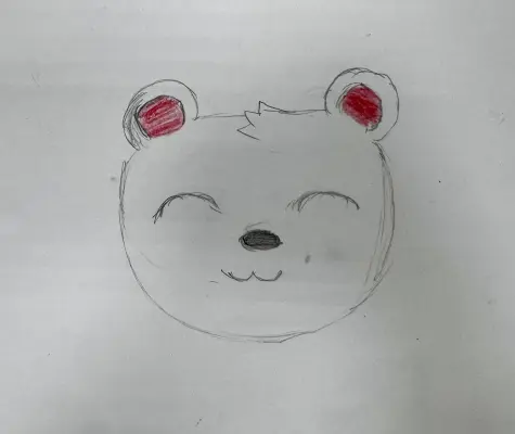 На этом рисунке изображена мордочка моего любимого медведя из мультика. В детстве я очень часто его смотрела, поэтому решила его нарисовать. Он очень хороший и добрый!