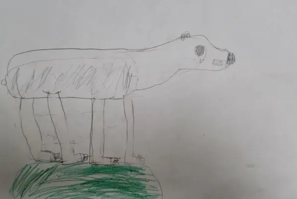 Я нарисовал белого медведя. Мне нравятся белые мишки. Они очень сильные и красивые. Они живут на далеком севере, где много снега и льда. Я нарисовал мишку из зоопарка.