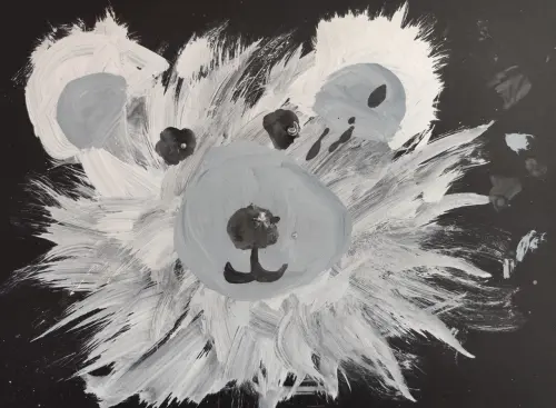 Я очень люблю белых медведей. Я с удовольствием наблюдаю за ними, когда мы с семьёй ходим в зоопарк. Этого мишку я нарисовала необычным для себя способом, с помощью зубной щетки. Это было очень интересно, увлекательно и здорово.