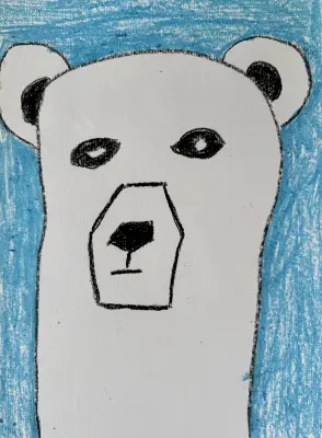 В детском саду воспитательница рассказывала про белого медведя Терпея, который живет в московском зоопарке. Я представила, какой он большой, белый, и нарисовала его портрет.