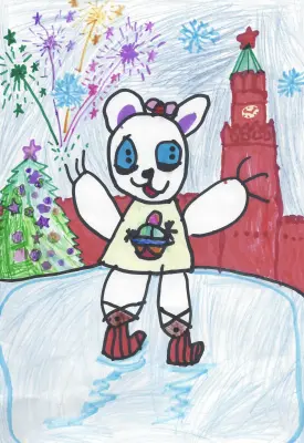 Белый медведь Терпей приехал в Москву и, конечно, отправился на Красную площадь. Ведь все, кто приезжает в Россию, а тем более в столицу, должны увидеть Кремль и Красную площадь. Специально для медведя волшебница устроила зиму. А на льду был каток. Медведь взял коньки и с удовольствием провел время. Сначала он катался один, но потом подружился с остальными любителями катка. Медведь очень понравилось в Москве. А потом он поехал жить в зоопарк и часто вспоминал каток на Красной площади.