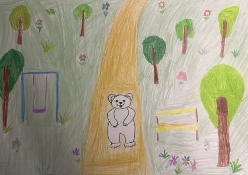 Белый медведь Терпей, вышел погулять в парк, посидел на лавочке, подышал чистым воздухом, покачался на качеле, пособирал цветы, ему очень понравилось, что он решил вернуться сюда, еще раз. :)