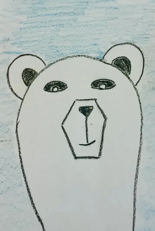 Добрый, весёлый, озорной и смелый белый мишка. Работа выполнена на акварельной бумаги формата А4 восковыми мелками. Я очень люблю белый медведей и часто бываю в зоопарке.