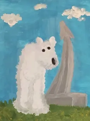 Прежде, чем нарисовать Терпея, мы познакомились с его не простой судьбой и предположили, что имя Терпей, произошло от слова «терпеть». И место для «прогулки» мы выбрали не случайно, нарисовав Терпея рядом с монументом «Покорителям космоса», как символ трудолюбия, силы воли и терпения наших учебных, сумевших запустить ракету в космос.