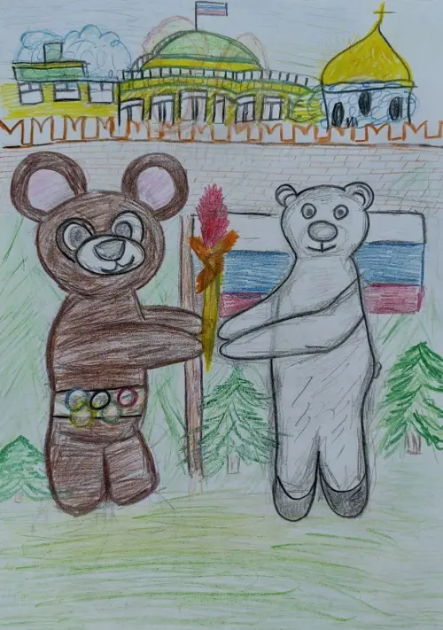 Они подошли ближе, и Олимпийский Мишка протянул руку с зажженным факелом. Факел вспыхнул ярким пламенем, освещая лица обоих медведей. Это пламя символизировало единство народов, дружбу и мир.