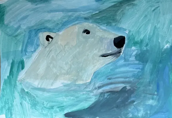 Я долго думал как изобразить белого медведя Терпея. Выбирал краски, цвета и их сочетания. Хотелось показать его добрым и надеюсь, мне это удалось.