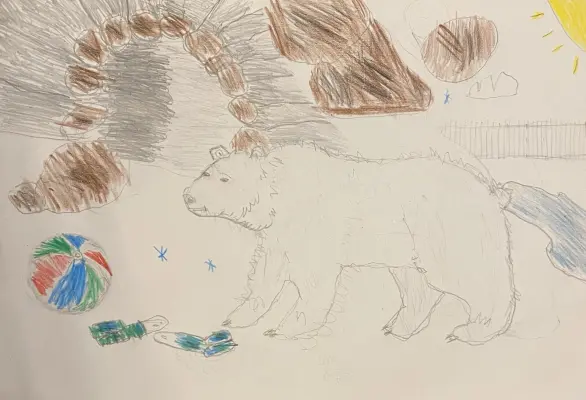 Меня зовут Терпей, и я белый медведь. Живу в зоопарке, но мне здесь хорошо. Больше всего я люблю купаться. Когда наполняют мой бассейн, я ныряю, перекатываюсь в воде и пускаю пузыри. Прохлада — это счастье. А ещё у меня есть друзья — смотрители. Они приносят мне рыбу, чешут мне спину скребком, а иногда мы играем в мяч. Я толкаю его лапой, они смеются и кидают обратно. Зимой — самое время валяться на снегу. Я растягиваюсь на холодном пушистом покрове, грею бока на солнце и зеваю. Совершенство.