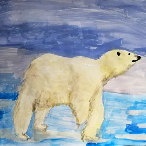 Я изобразил белого медведя из настоящего мира, как он живёт на Севере. Именно поэтому картина и называется «Настоящий белый медведь». Хочу чтобы все медведи были здоровыми, ведь их стало так мало. Поэтому нарисовал медведя, чтобы их поддержать!