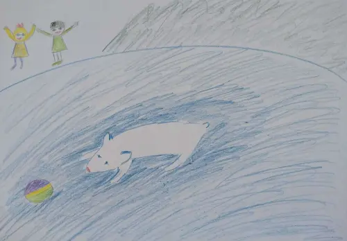 Мы с сестрой любим смотреть, как плавает в зоопарке белый медведик Терпей. Мне нравятся белые медведи. У меня есть игрушечный белый медвежонок, похожий на настоящего Терпея из зоопарка.