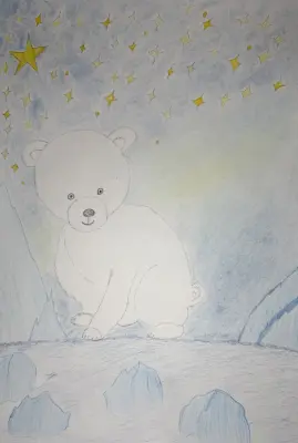 Я очень люблю животных и считаю белых медведей особенно красивыми и сильными. В своей работе я изобразила медвежонка Терпея под ярким северным небом, наполненным множеством сияющих звёзд. Мне хотелось показать, как отважно и уверенно этот маленький герой чувствует себя среди бескрайних просторов Арктики. Я верю, что Терпей станет большим и смелым медведем, который сумеет преодолеть любые трудности. Своим рисунком я хочу обратить внимание на важность сохранения живой природы и заботы о животных, особенно тех, кто нуждается в нашей защите и поддержке. Пусть Терпей станет символом надежды на то, что люди научатся бережно относиться к окружающему миру. Рисуя его, я думала о том, как здорово было бы, если бы каждый человек, посмотрев на мою работу, задумался о защите природы и захотел бы помочь животным.