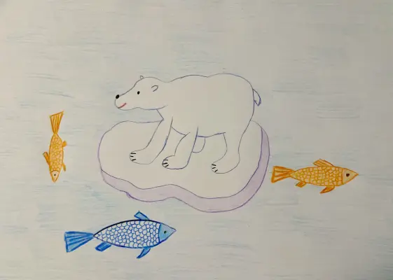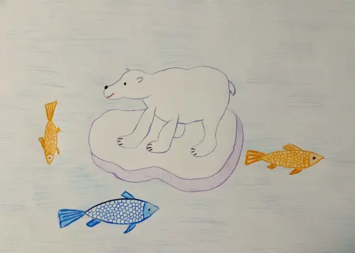 Ваня очень любит медведей. Сначала мы посмотрели ознакомительный фильм о белых медведях, а потом приступили к рисованию. Рисунок выполнен цветными карандашами.