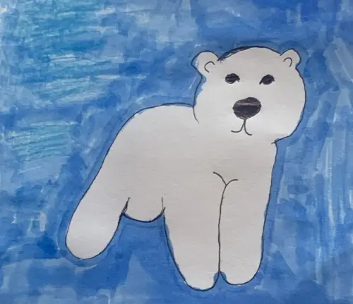 Белый медведь Терпей, когда был ещё маленьким, потерял маму. Я его представил маленьким, грустным и беззащитным. Таким его нашли и передали в зоопарк. Сейчас он уже взрослый, красивый, величественный.