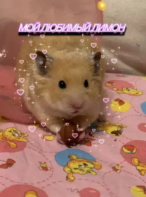 Мой любимый домашний питомец – это хомяк по имени Лимончик. Ему 1 годик и приехал он к нам из Санкт-Петербурга из питомника. Имя Лимончик я придумала, потому что он похож по цвету на лимон. Спинка у него желтенькая, а животик беленький. Мой питомец очень активный и шустрый, но только по ночам. Днём он любит поспать в своем гнезде, которое он делает себе из салфеток. Он у меня очень хозяйственный хомяк и все время делает запасы, приносит их в гнездо или прячет по углам или в колесе. Ночью он обожает бегать в этом самом колесе и все его запасы бегают и шумят вместе с ним. Лимончик, видимо, мечтает попасть в Сирию, так как он Сирийский хомяк. Каждую ночь он тренируется в колесе и пробегает очень много. Когда мы с мамой обнаружили, что он бегает в своем колесе то в одну сторону одной ночью, а в следующую – в другую, мы решили, что он сначала бежит в Сирию, а потом домой.