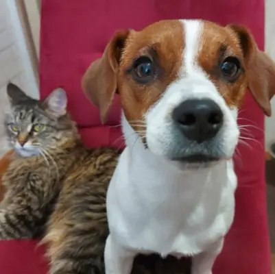 У нас есть наши забавные питомцы – кошка Люся и собака Марта. Они наши полноценные члены семьи.