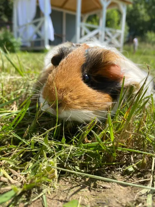 Я хочу рассказать о моём домашнем животном. У меня живёт морская свинка по имени Дуня.