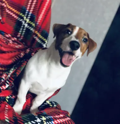 Кличка моего пса – Чип. Он родился 7 апреля 2021 года. Когда Чип был маленьким, он очень любил резвиться и играть со своими игрушками. Он рос вместе с моим котом, и смотря на него, иногда повторял его привычки. Когда я пришла выбирать щенка, я увидела зажатого в угол, дрожащего от страха цуцика. На спине у него были пятна в виде крыльев. После того как он попал к нам в дом, я думала Чип будет долго привыкать к новому месту, но он быстро адаптировался и начал бегать по всей квартире. Мы поставили ему небольшой загон, дабы защитить его на время, пока нас нету дома. После того, как Чип поел, он не мог выйти из загончика потому, что у него раздувало живот, как у бочонка.